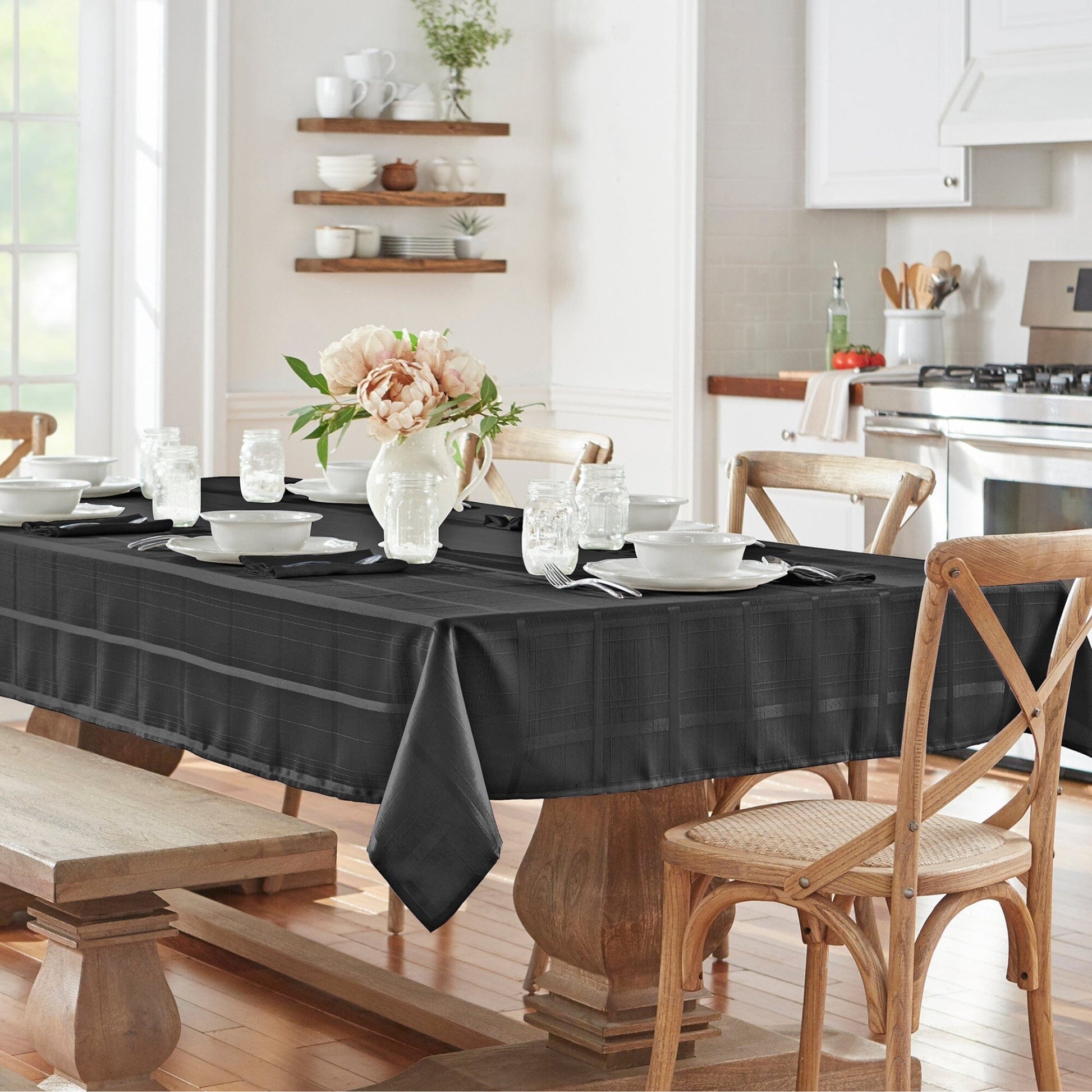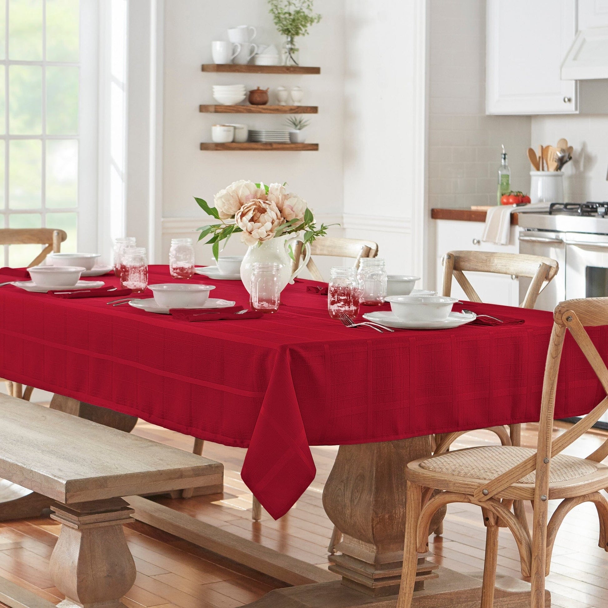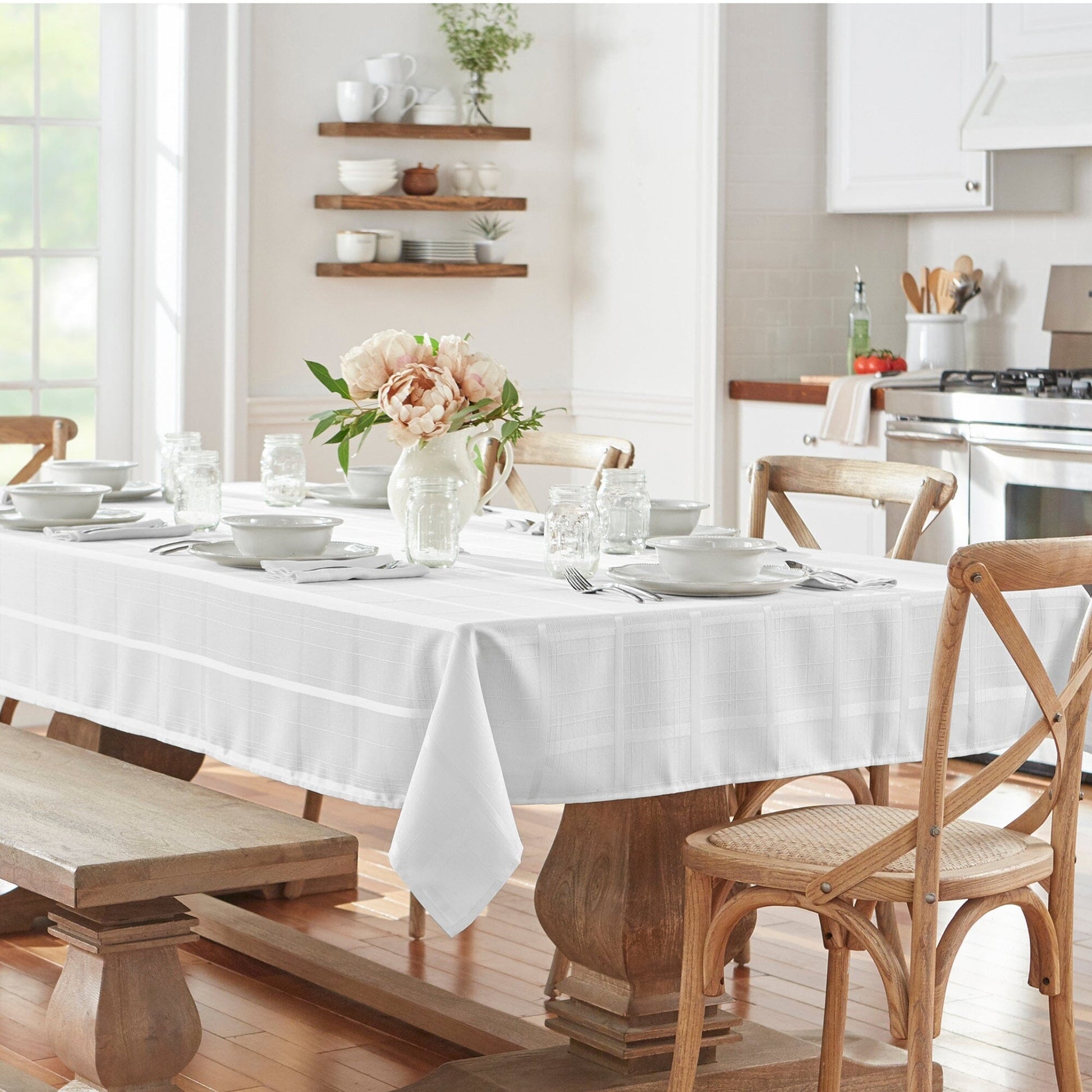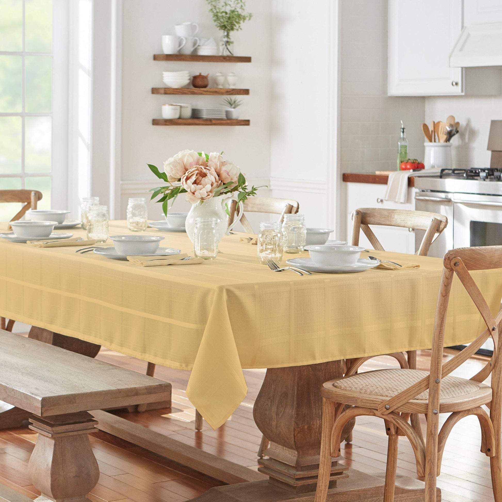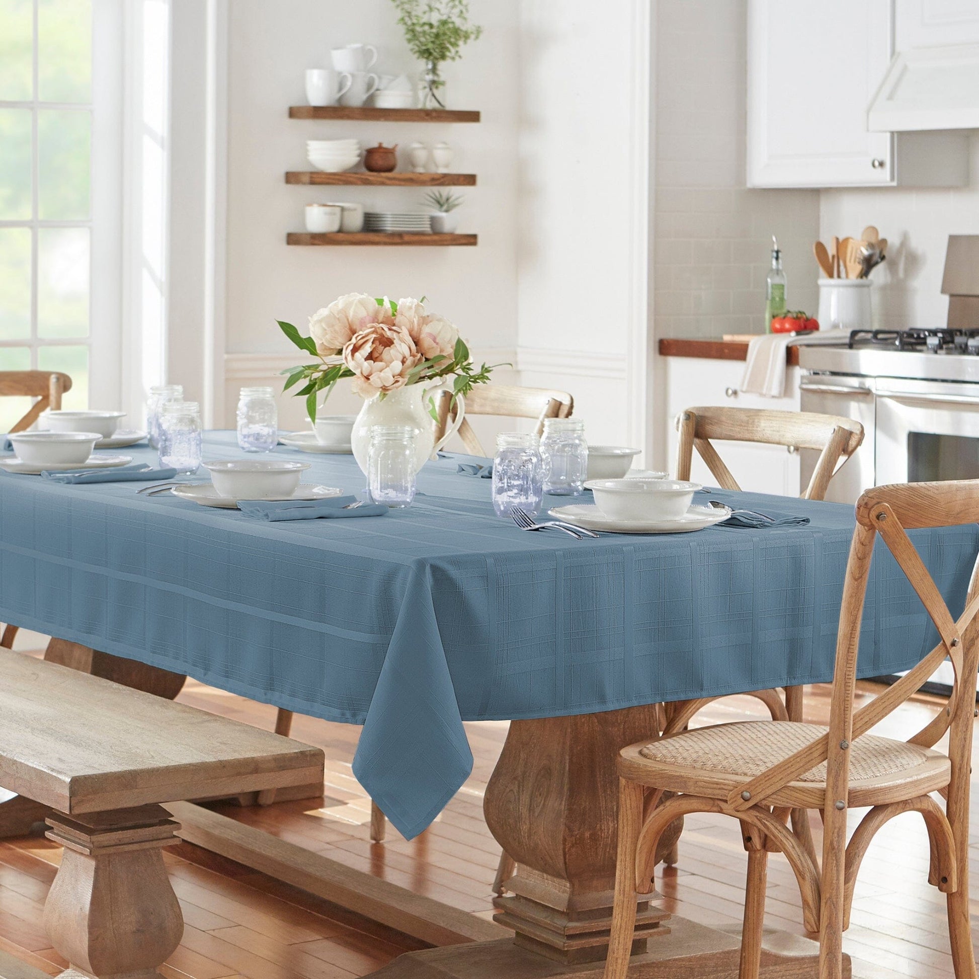 El mantel Elegance Plaid Jacquard es la solución perfecta para tus necesidades de decoración y mantelería. El diseño a cuadros de jacquard delicadamente tejido le da la versatilidad de un sólido, con un toque de moda. Excelente para ocasiones especiales, eventos, fiestas, reuniones familiares y uso diario, este mantel tiene el tacto suave de un mantel normal, con la función adicional que necesita. La tela tiene un acabado repelente al agua y a las manchas. La tela sedosa se puede planchar para eliminar las arrugas rebeldes y hacer que el mantel no se arrugue. El borde con dobladillo añade un aspecto acabado y evita el desgaste. Disponible en una gran selección de formas y tamaños de mesa para satisfacer todas sus necesidades de entretenimiento. 100% poliéster. Fácil cuidado, lavable a máquina.