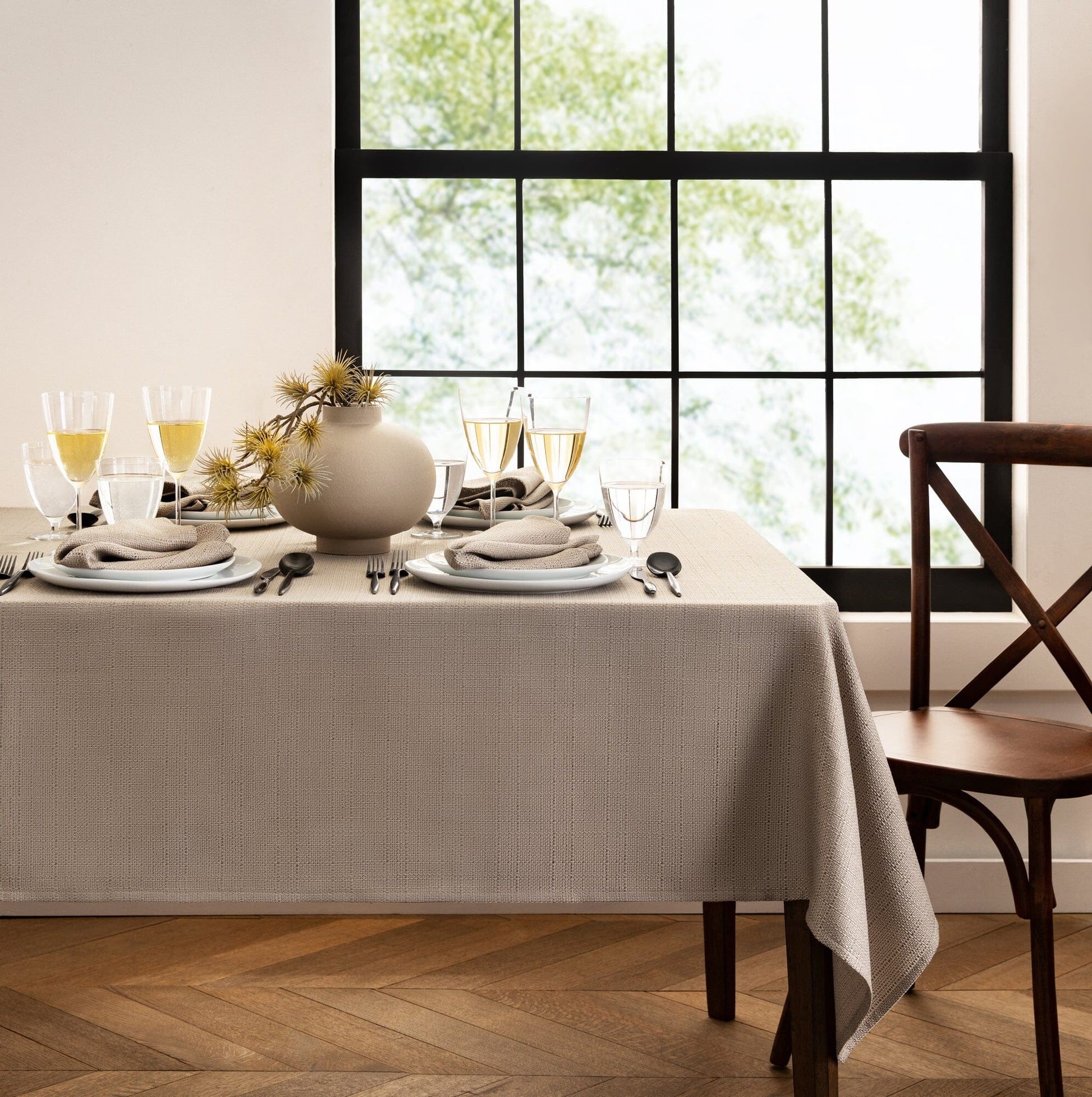 El mantel Laurel Solid presenta un tejido texturizado de lujo en una elegante paleta de tonos neutros, ideal para cada estilo de decoración. El aspecto clásico y el potencial de estilo versátil hacen de este mantel de gran tamaño el favorito para almuerzos informales, reuniones de temporada, celebraciones y eventos festivos formales o incluso cenas diarias. Fabricada con poliéster de alta calidad para una hermosa caída, nuestra tela pesada presenta un acabado repelente al agua, resistente a las manchas y a la decoloración para garantizar que su mesa esté protegida contra rayones, manchas y derrames accidentales. La tela se limpia fácilmente con un paño húmedo o una esponja. Los bordes ingeniosamente dobladillos añaden un aspecto acabado y personalizado a las mesas modernas y tradicionales, al tiempo que evitan el desgaste.