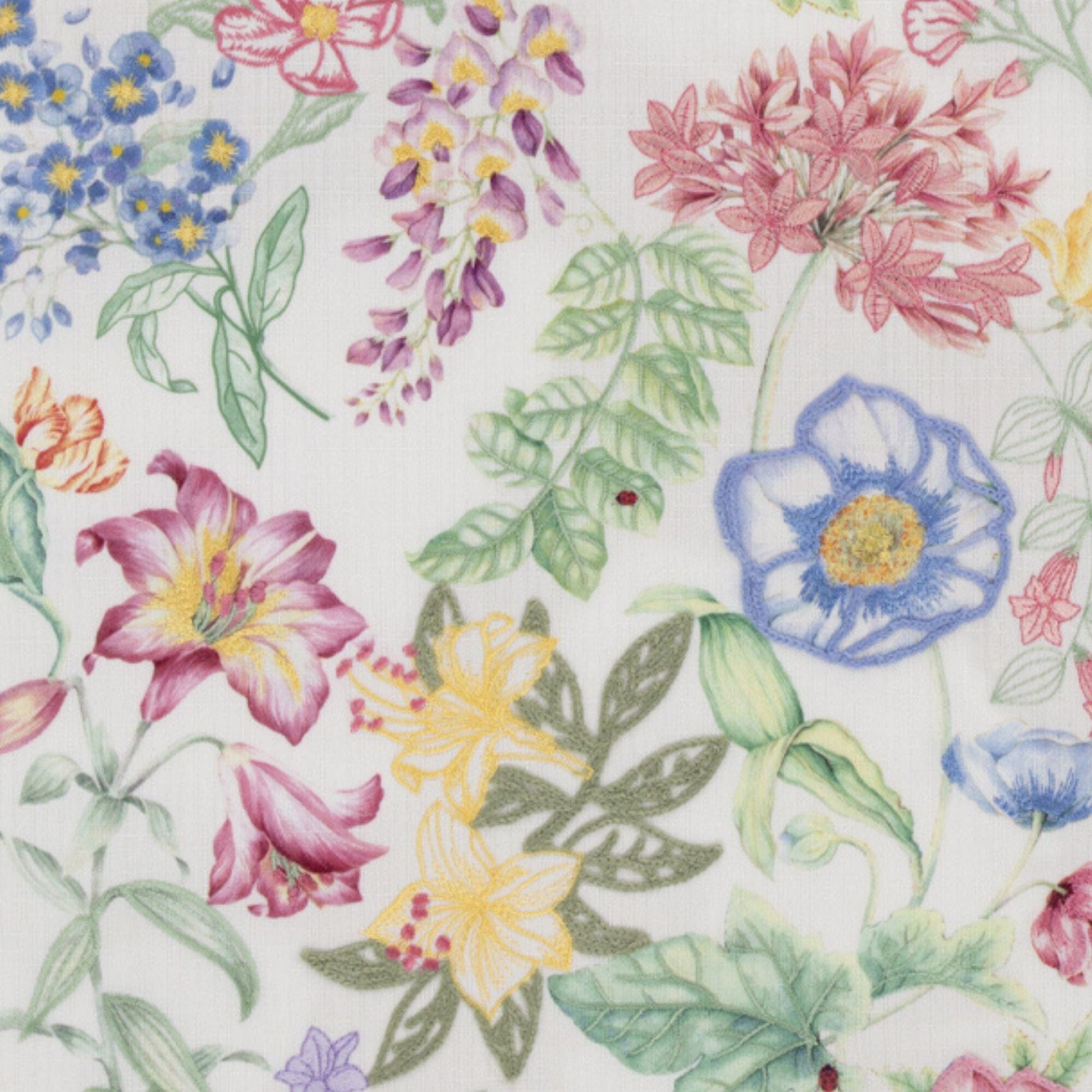 Charming Garden-Inspired Design: Features lively dragonflies, butterflies, and bumblebees among embroidered floral patterns.