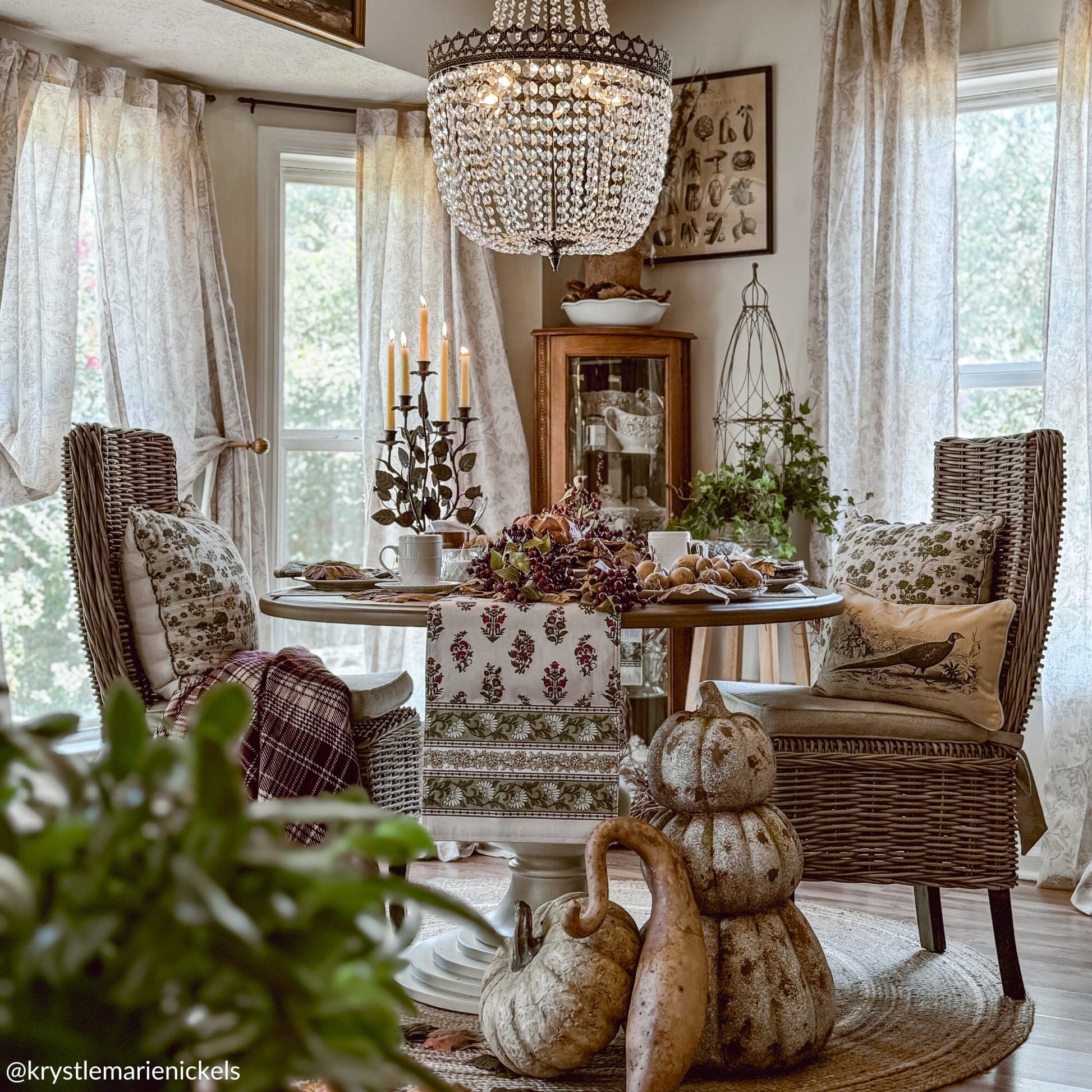 Elevate your dining experience with our Nomad Harvest Block print artisanal style table runner. Designed to bring a touch of casual elegance to your Fall or everyday table setting, this reversible centerpiece runner has been crafted with meticulous attention to detail and features a paisley block print design in shades of red and olive green on a solid beige ground, complimented by an ornate border design on both sides. Crafted from 100% polyester, this table, console, or buffet runner combines softness and durability, ensuring it lasts for years to come. Sold as a single table runner. Complete the look by adding our coordinating Nomad Harvest Block Print napkins, tablecloth, and placemats to your collection, available separately.