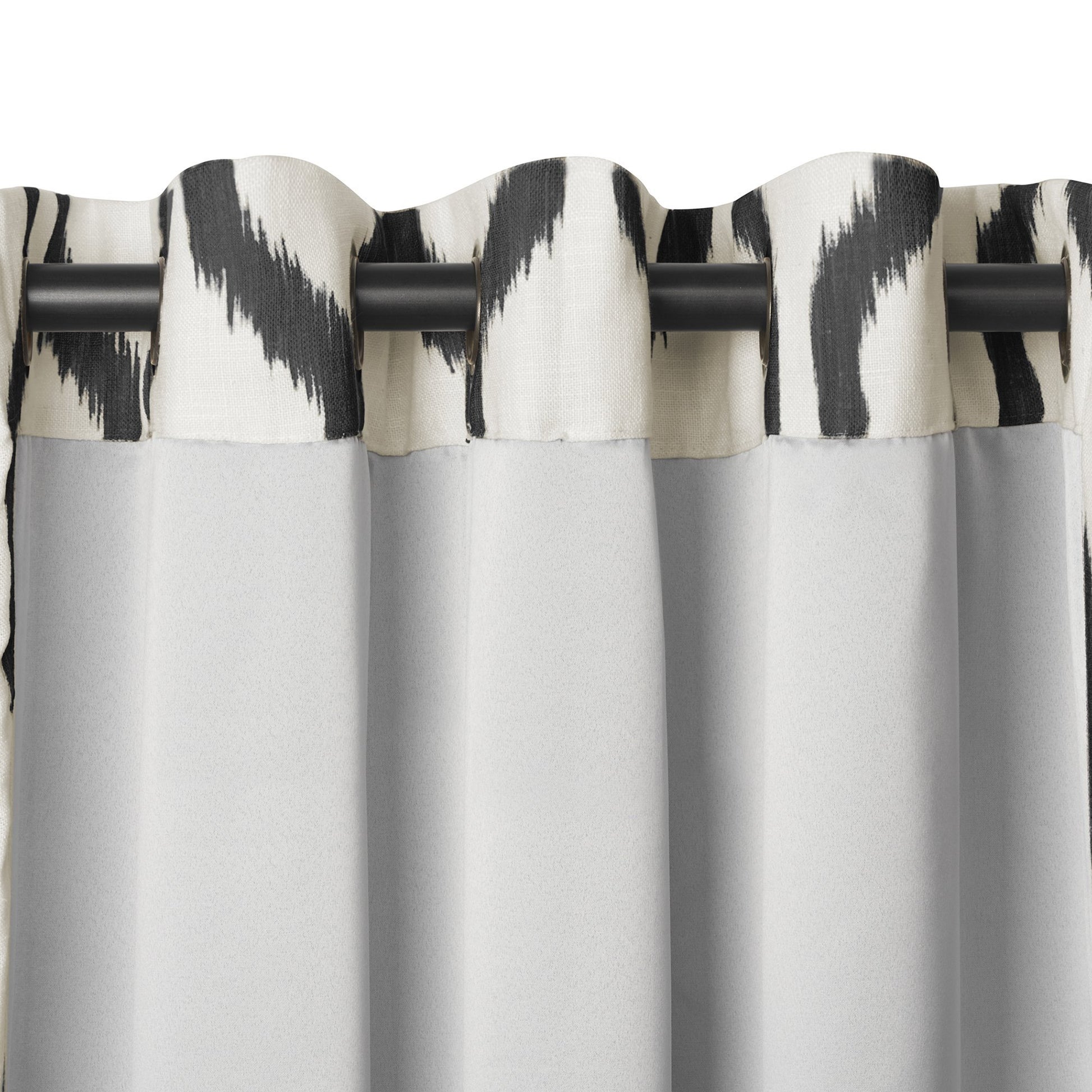 Se recomiendan ojales de bronce antiguo de 1,65” con una varilla de hasta 1 pulgada para un movimiento máximo. Las combinaciones de colores negro, índigo y gris topo presentan un fondo de color lino natural. Light Grey y Natural están sobre un fondo de lino más blanco.