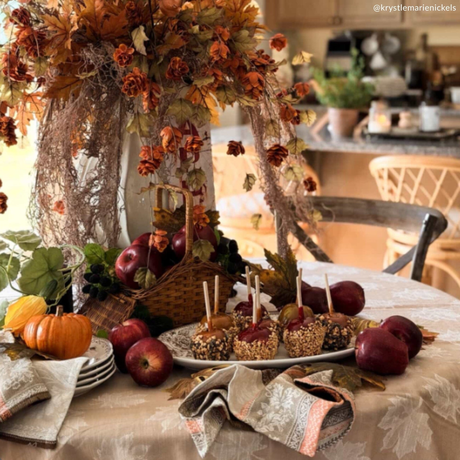 Elevate your fall tablescape with the elegant Windswept Harvest Jacquard Napkin Set. Featuring a beautifully woven leaf design layered over a classic plaid pattern, this set of 8 fabric napkins blends timeless tradition with seasonal charm. The rich color palette of brown, sage, and orange over an ivory ground complements a variety of fall décor and dinnerware making this charming set perfect for Thanksgiving, seasonal celebrations, events, parties, family gatherings, and everyday dining throughout the harvest season. 70% cotton, 30% recycled polyester fabric offers an elegant drape and a lush feel, which becomes softer through time and use. The sanforizing finish helps reduce shrinkage, keeping the fabric’s size and shape intact over time. Finished off with a delicately hemmed edge to provide a finished look and prevent wear and tear, these reusable napkins are machine washable for easy care. Complete the look by adding our coordinating Windswept Harvest Tablecloth to your collection, available separately.