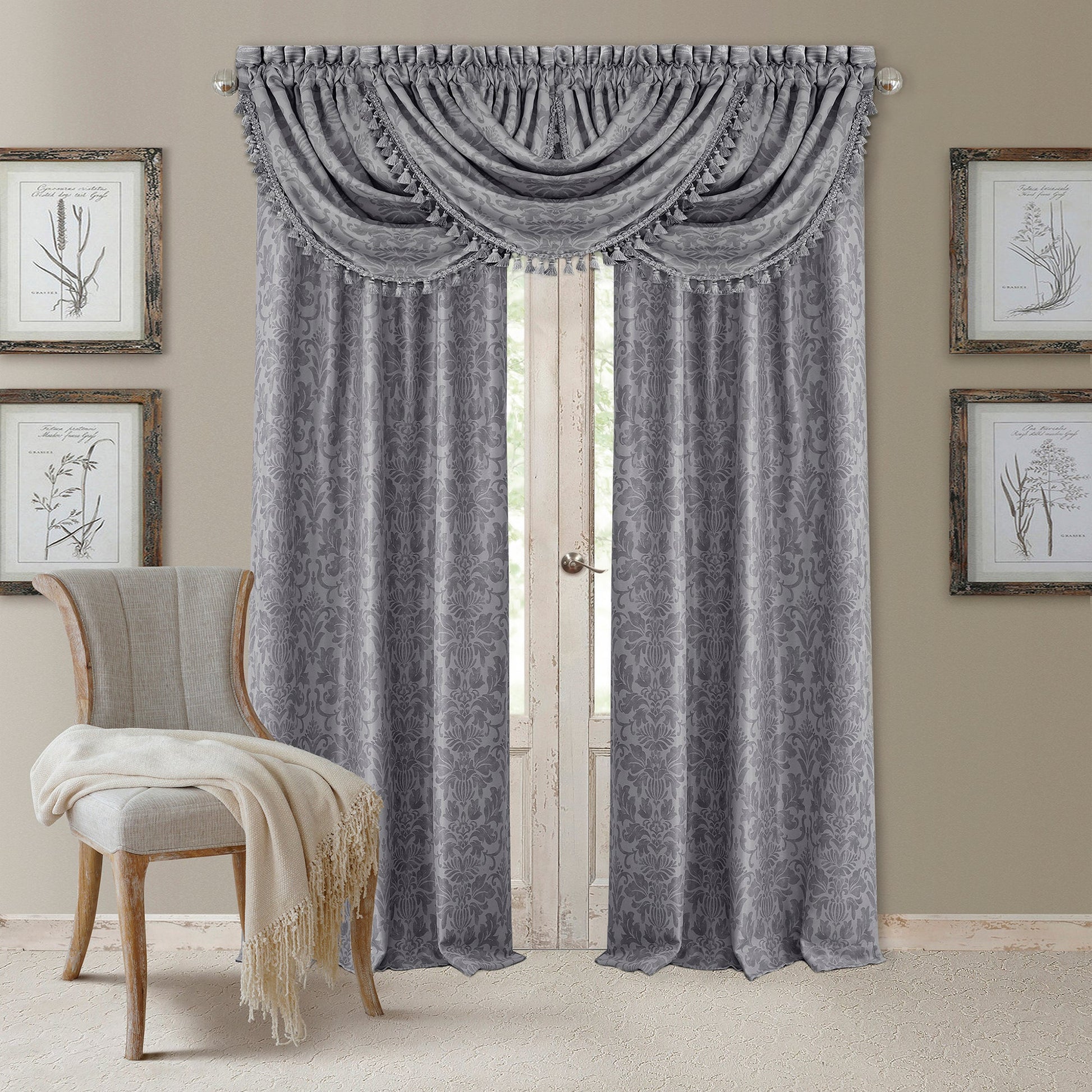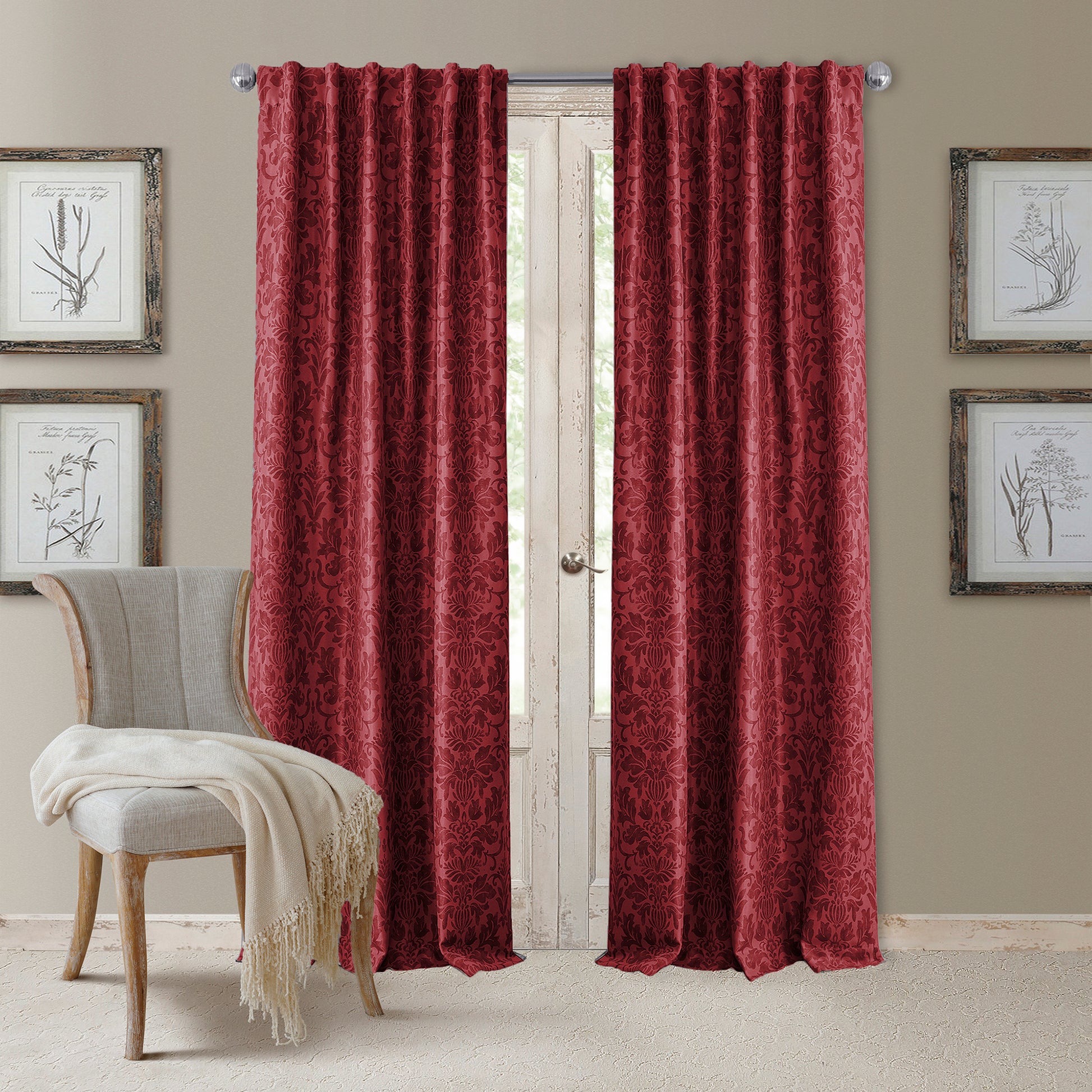 Timeless and elegant, the Antonia Blackout Curtain and Valance Collection is sure to bring an elevated, old world touch to your home. Designed with a soft, luxurious drape, these charming window panels feature an ornate floral damask print, are offered in four classic colors, and provide blackout benefits making them the perfect addition to every décor style. Featuring woven blackout fibers, the Antonia panels prevent most light from entering windows to help darken any room for your best sleep. Ideal for bedrooms, living rooms, dens, and home offices. Sold separately, the coordinating waterfall tassel valance is a perfect way to add a more traditional touch to any space. Easy to hang, this versatile collection features both back tab and rod pocket hanging options. The four inch rod pocket/back tabs are recommended with up to a two inch rod for maximum movement. Curtain panels and valance are sold separately and individually. Easy care, machine wash cold in gentle cycle.
