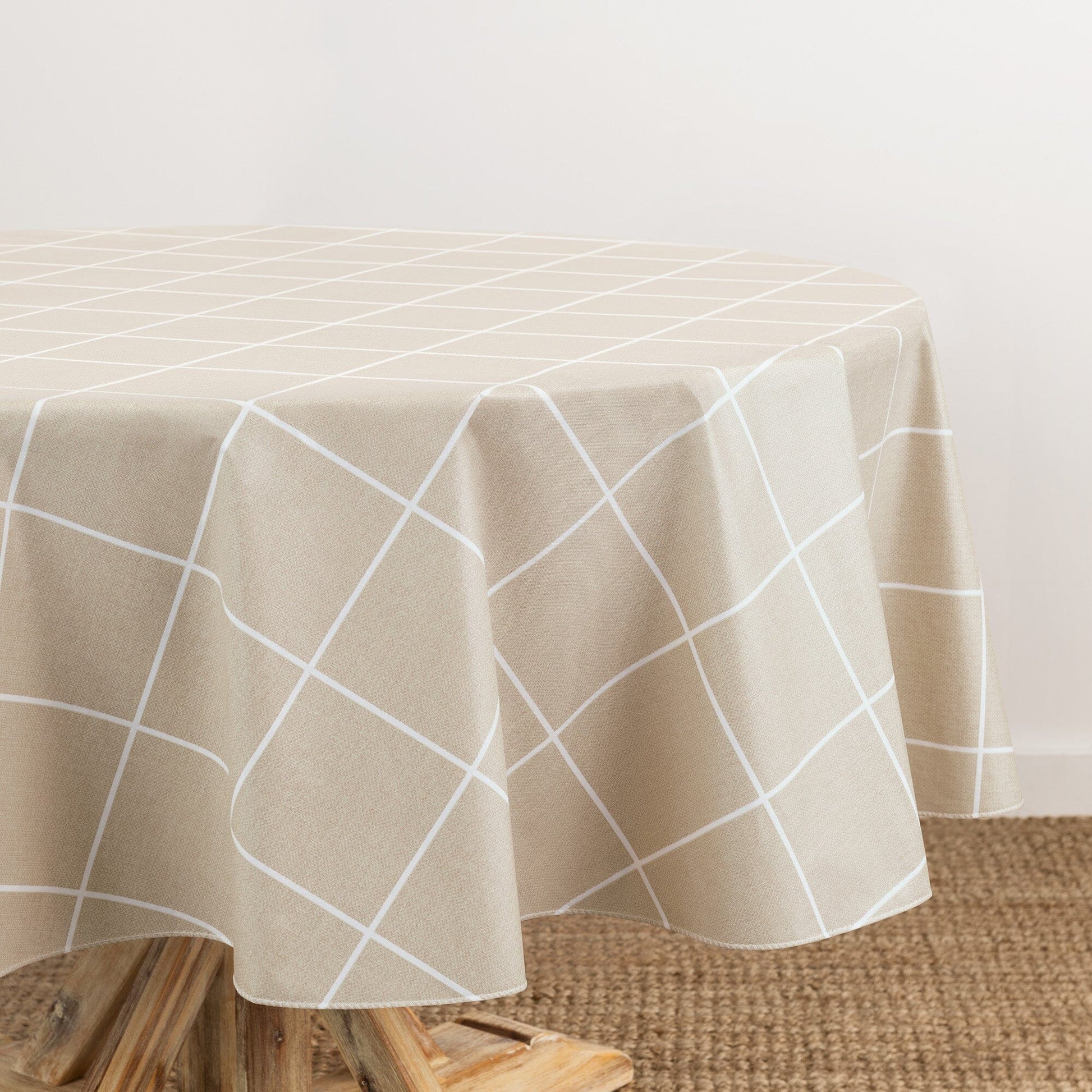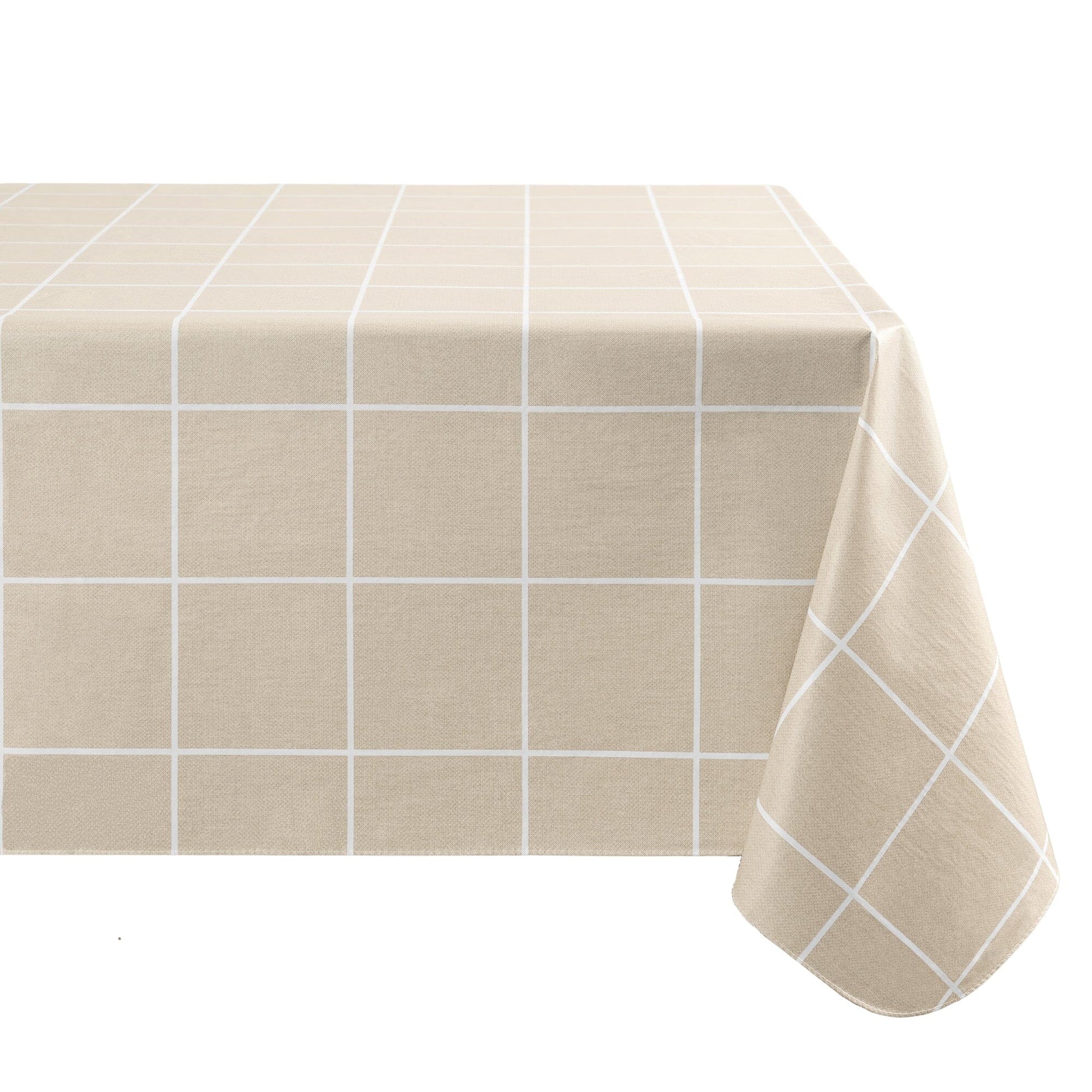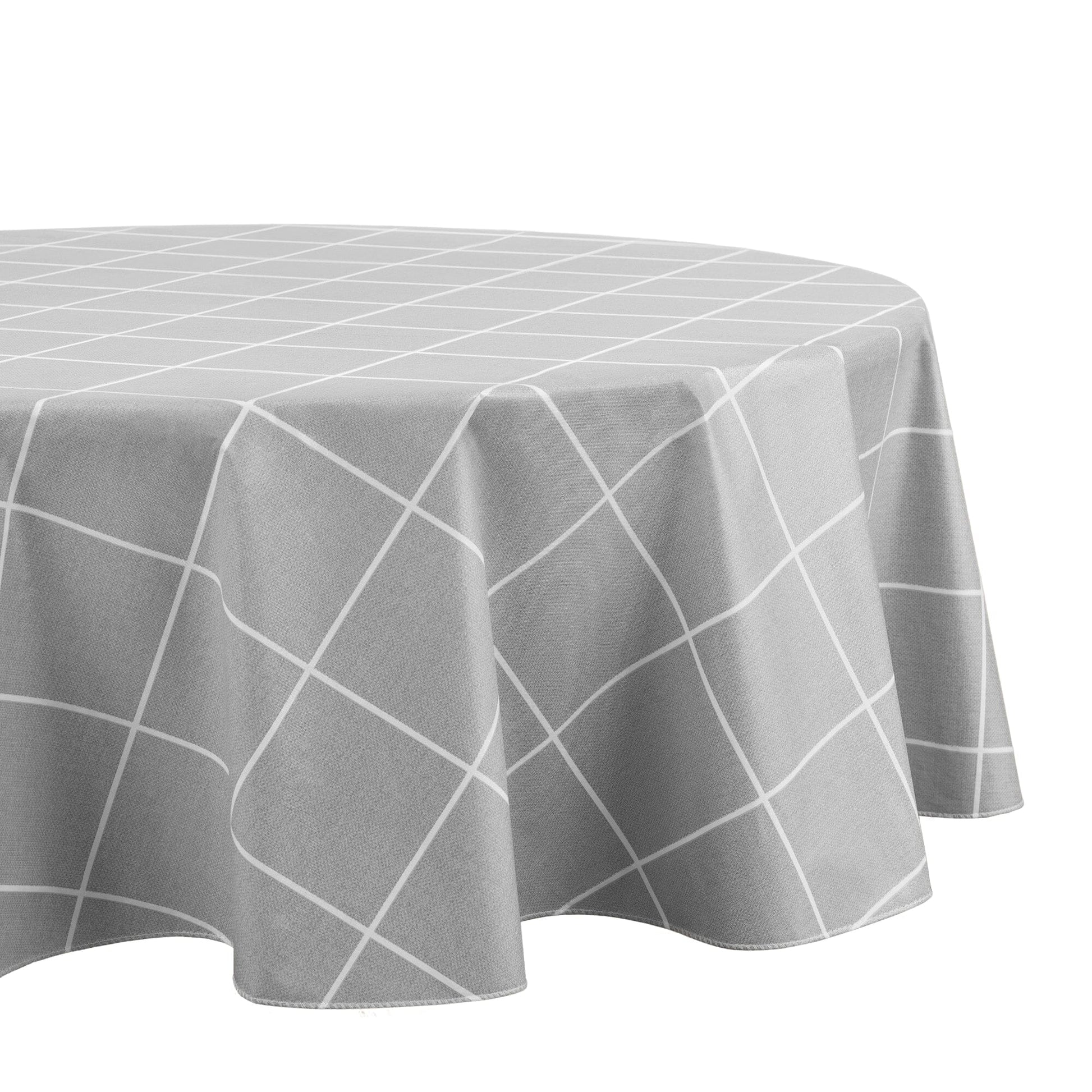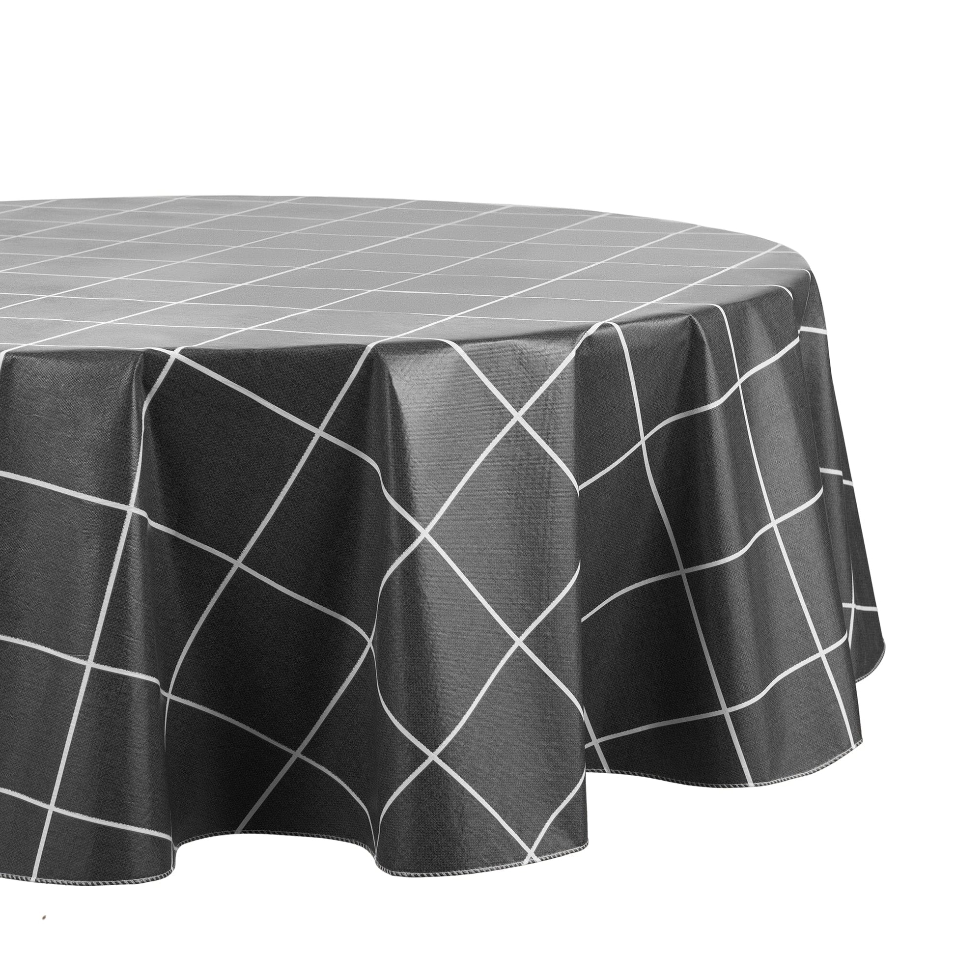 The Windowpane Plaid Grid Printed Vinyl tablecloth collection features a textured linen look in a modern grid pattern, perfect for any decor style. Each square/check design measures 4”x4”. Excellent for special occasions, events, parties, picnics, barbeques, and everyday use, this PVC table cloth has a polyester flannel backing that holds it in place and creates extra durability. Made from thick, premium quality vinyl, our heavy duty tablecloth is designed to withstand repeated use. Vinyl face fabric is water and stain resistant and wipes clean with a damp cloth or sponge. Flocked backing can be steamed to release unwanted creases and keep your tablecloth wrinkle free. The hemmed edges add a finished look and prevents wear and tear.