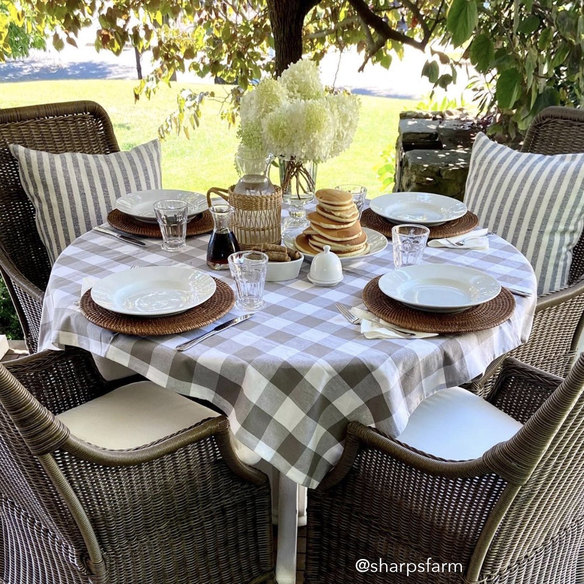 Stylish, rustic and beautiful the Farmhouse Living Collection offers everything you need to create the shabby chic, modern country home. This fashionable tablecloth is made from premium quality cotton and features the perfect buffalo check pattern in a variety of colors to create the best Farm house look. Excellent for special occasions, events, parties, and everyday décor use. Soft cotton can be easily ironed to release stubborn creases and make your tablecloth wrinkle free. Delicately hemmed edge adds a finished look and prevents wear and tear. Available in several sizes and shapes including rectangle, square, oval and round.