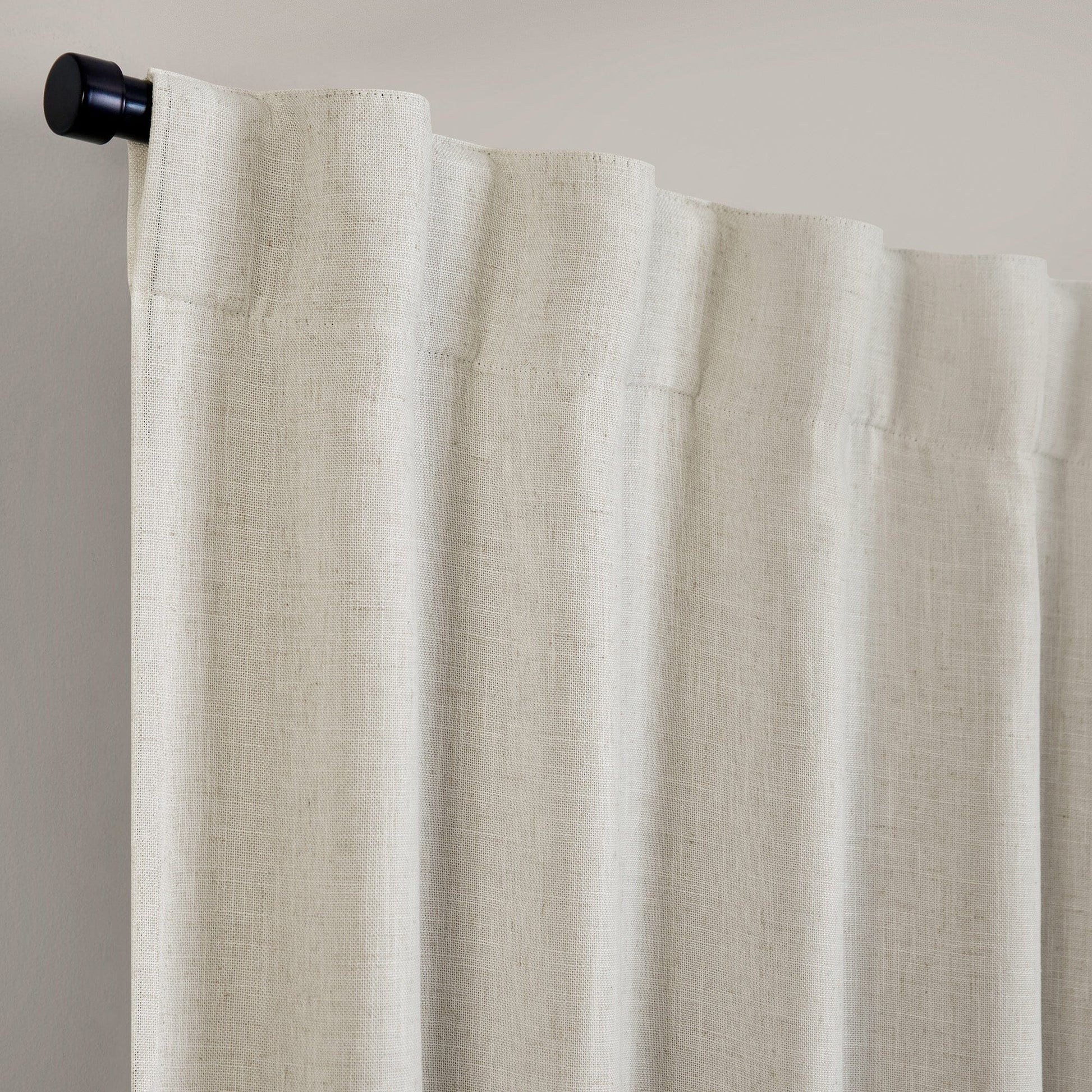 Dress your window in modern luxury with our Harrow curtain panels. Designed with a soft, luxurious drape, these casual yet chic window panels are offered a variety of neutral shades and provide blackout benefits making them the perfect addition to any room and every décor style. Slub weave fabrication has visible linen flecks for a natural, textured look. Opaque fabric blocks out light, noise and helps insulate windows. Featuring a sewn in gray blackout liner crafted from 100% polyester, the Harrow curtain prevents most light from entering windows to help darken any room for your best sleep. Ideal for bedrooms, living rooms, nurseries, and home offices. Hang the curtain panels from the back tabs for an elegant pleated style or use the rod pocket to create a more casual gathered look. The four inch rod pocket/back tabs are recommended with up to a 2 inch rod for maximum movement. Sold as individual panels. Pair with our Elrene Home Fashion window hardware for a coordinated look (sold separately). 94% Polyester; 6% Linen. Easy care, machine wash cold in gentle cycle. Tumble dry low. Cool iron as needed.