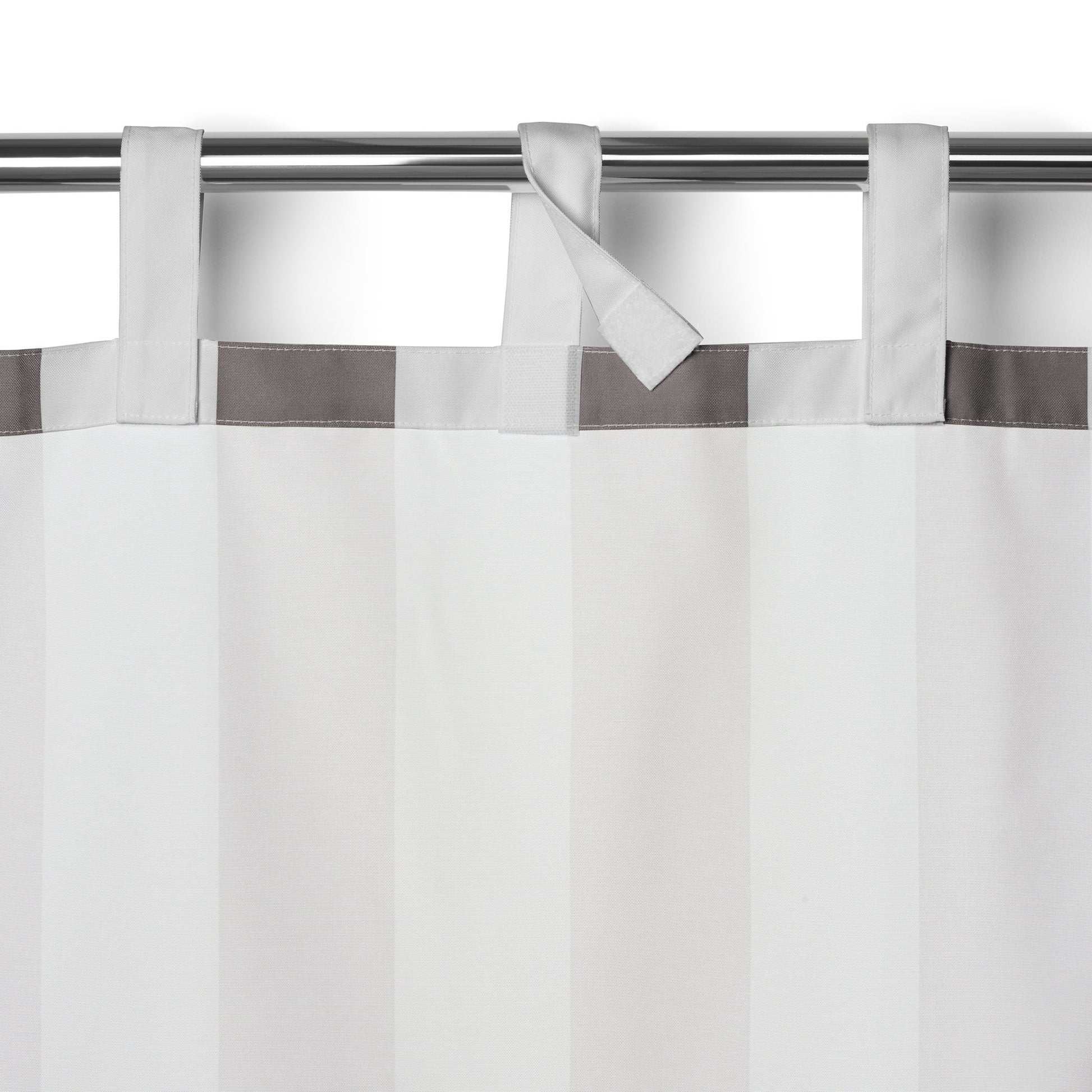 Bring a coastal touch to any space in your home with the Highland Stripe Indoor/Outdoor Curtain Collection. These stylish yet casual window panels offer water and fade resistant properties, and are UPF 50+ sun/UV protectant making them perfect for any large outdoor entertaining space such as a patio, deck, porch or cabana. Featuring a wide striped pattern offered in four classic colors, the Highland Stripe panels are sure to suit every decorating style from modern to traditional. Hook and loop fastener tab tops measure four inches in length and allow you to easily hook tabs around curtain rods or other outdoor structures up to two inches. Crafted from 100% polyester, these versatile panels are durable enough to withstand the elements while still being machine washable and easy to care for.