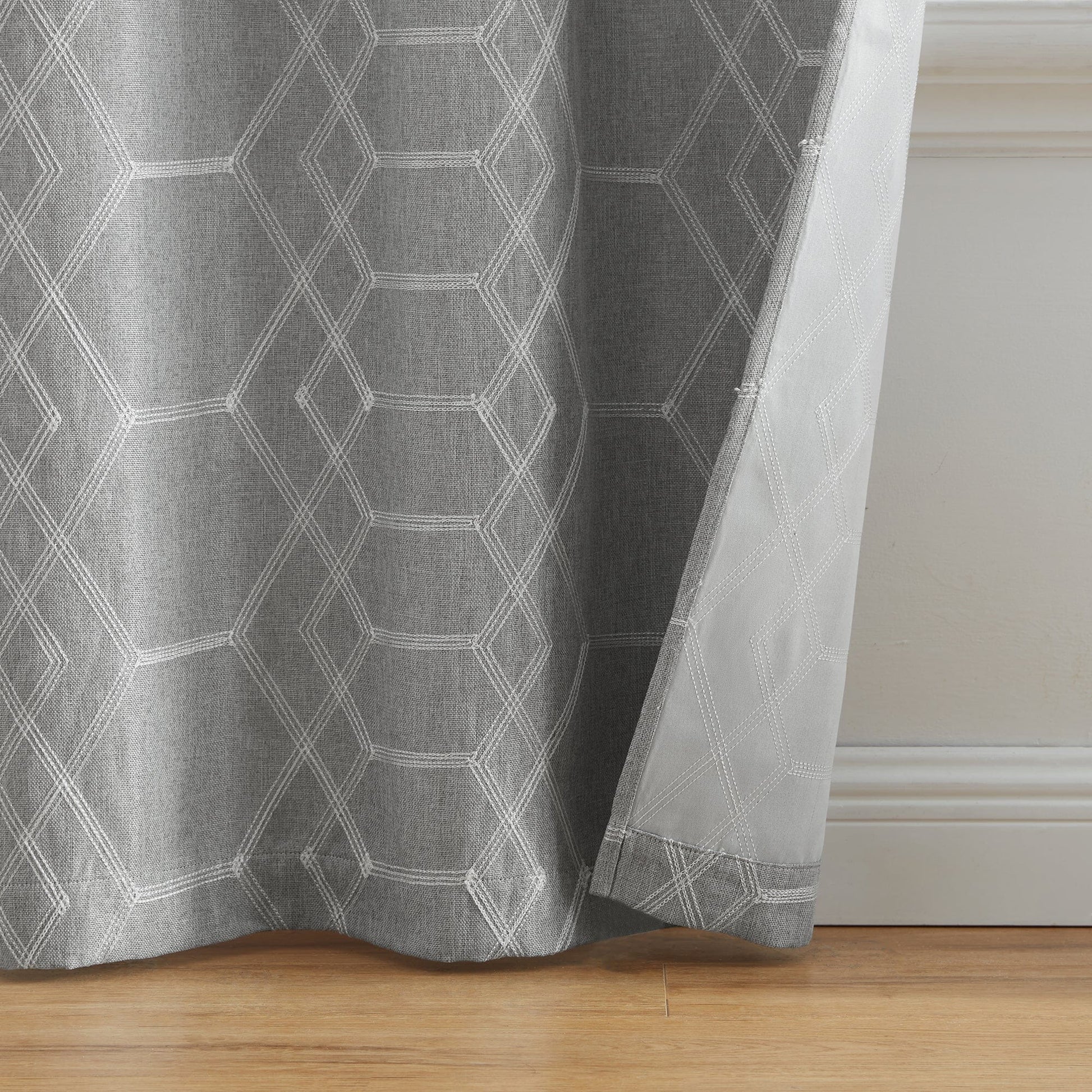 Kendal Geometric Embroidered Blackout Window Curtain Panel, Set of 2