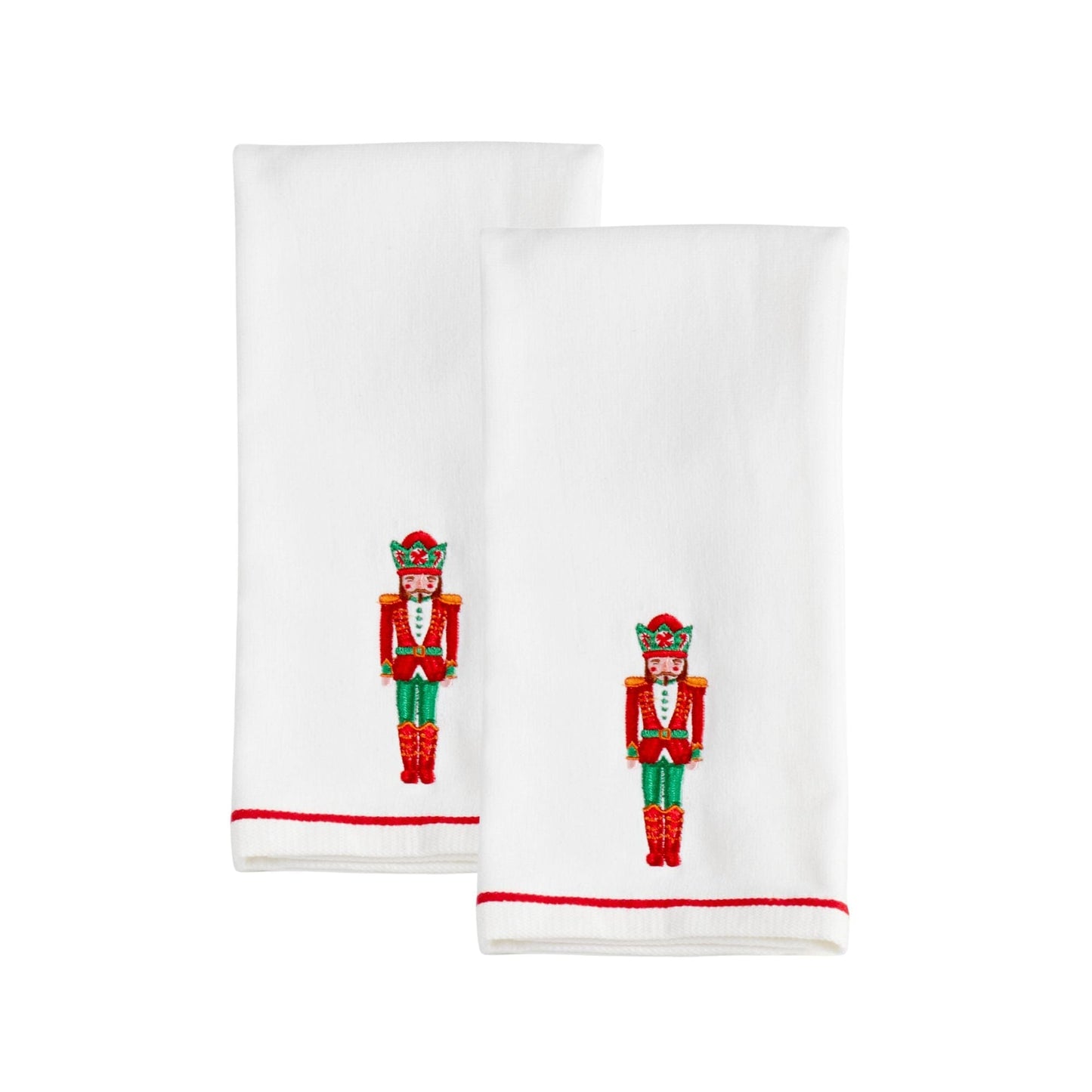 Add a touch of timeless holiday elegance to your home with the Lenox Bayberry Nutcracker Kitchen Towels Set, sold as a set of 2. Each white tea towel features an intricately embroidered nutcracker design in festive red and green, finished with a coordinating red border for a polished seasonal look. Crafted from soft and absorbent cotton, these 18”x28” dish towels are both decorative and functional, perfect for everyday use. Whether gifted or displayed in your own home, these kitchen towels are sure to bring the warmth of the holidays to any kitchen this winter season. Easy to care for, machine washable.
