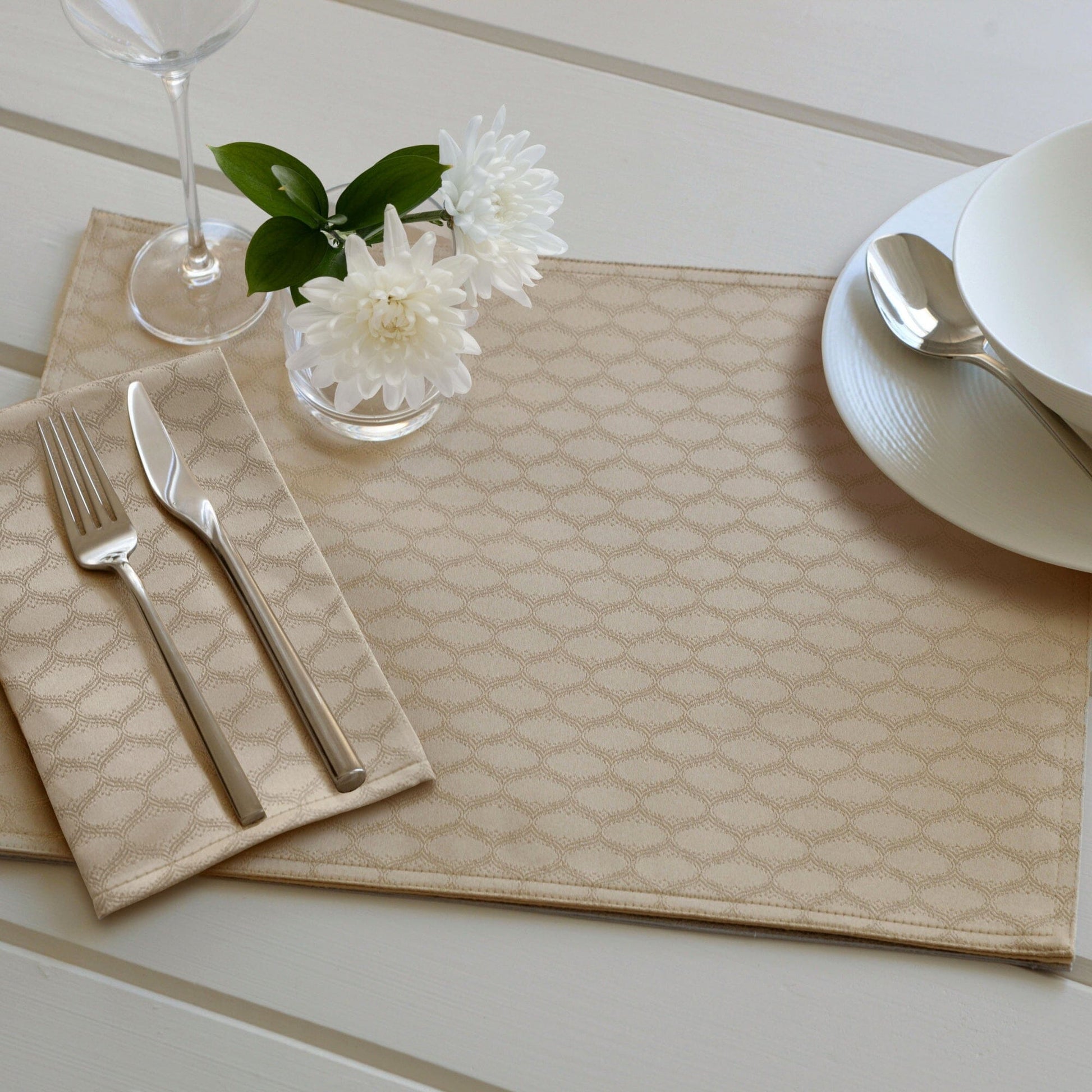 Bring timeless style and elegance to your dining table with the Lenox Olivia Placemats. Featuring an intricate tone-on-tone lattice pattern, these table mats bring texture, dimension, and style to any dining occasion. Available in multiple colorways they coordinate perfectly with the Olivia tablecloth, napkins and table runner for a cohesive, polished look. Crafted from 100% polyester, this set of four placemats offers both durability and easy care, making them ideal for everyday meals or special gatherings.