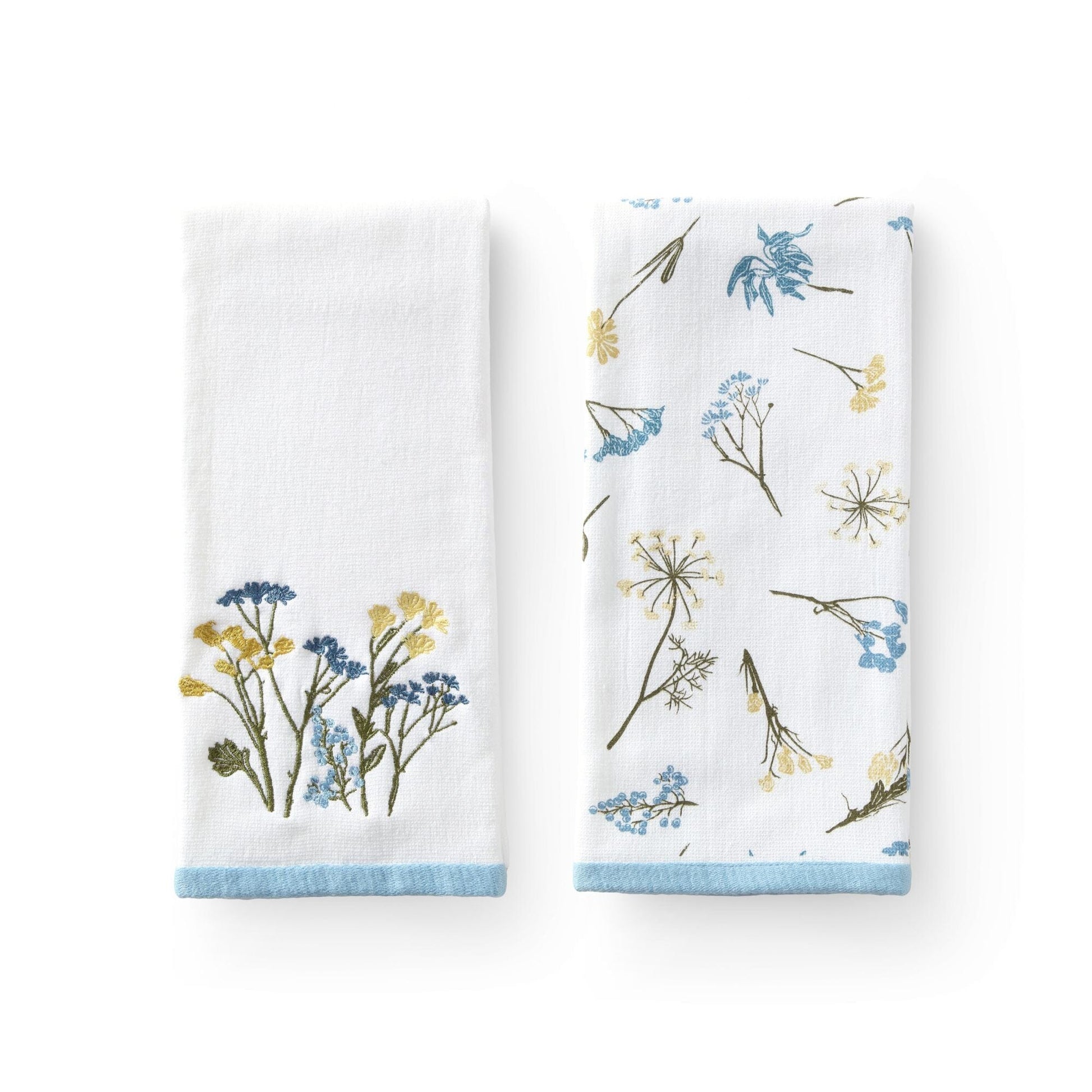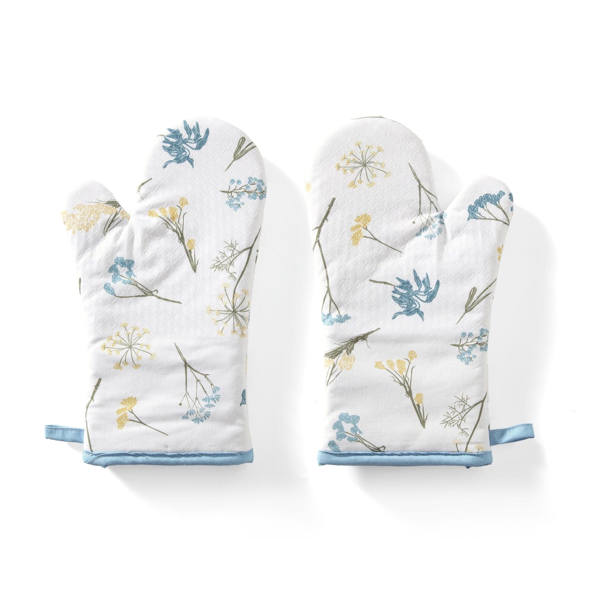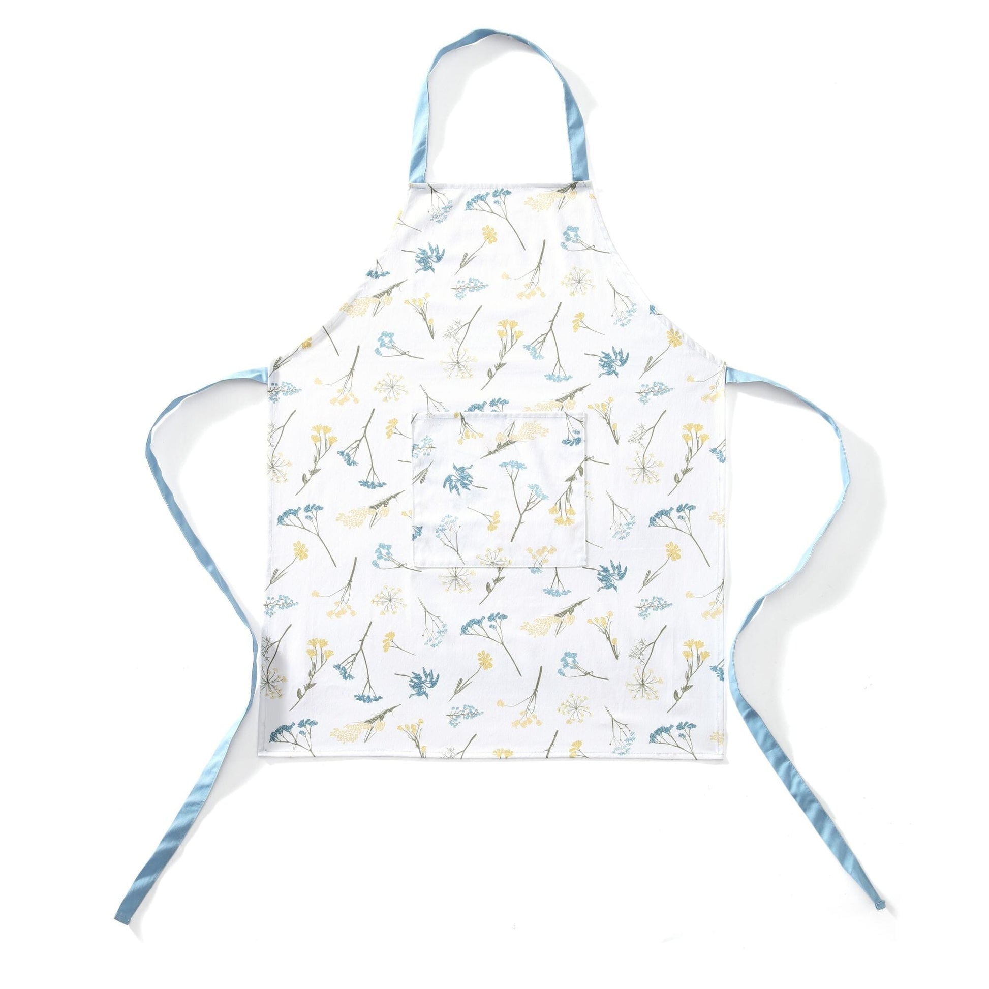 Bring a touch of botanical beauty to your kitchen with the Lenox Wildflowers All-Over 5-Piece Kitchen Set. Inspired by hand-sketched meadow florals, this textile collection features delicate wildflower illustrations in soft shades of blue, yellow, and green for a fresh, airy look. Crafted from 100% cotton for comfort, durability, and absorbency, this cookware linen set includes a coordinated kitchen apron, two oven mitts, and two dual purpose kitchen towels— perfect for handling cooking tasks, drying dishes, or adding a stylish touch to your kitchen. Thoughtfully packaged and ready for gifting, it makes a delightful present for holidays, housewarmings, bridal showers, or any Lenox collector seeking timeless kitchen décor.