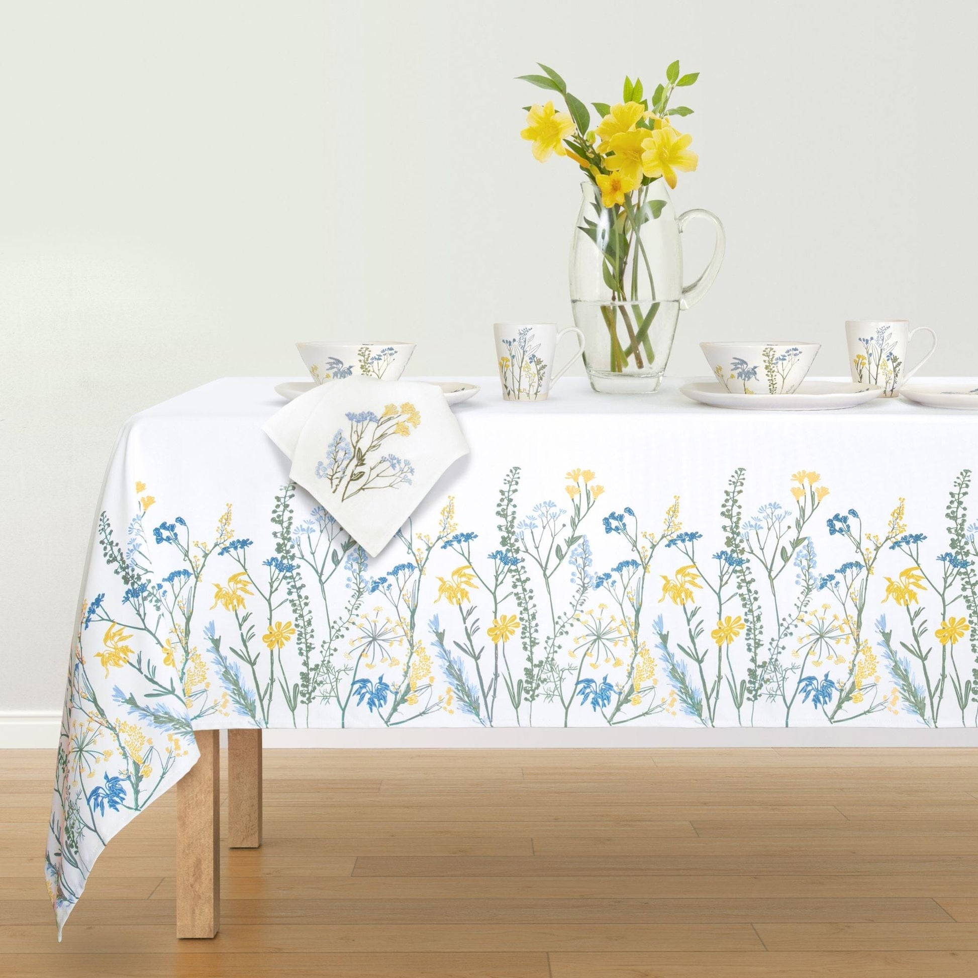 Bring the beauty of a blooming meadow to your table with the Lenox Wildflowers Border Tablecloth. Adorned with delicate yellow, blue and green wildflowers, this tablecloth is sure to bring a touch of springtime freshness to everyday dining and seasonal celebrations alike.