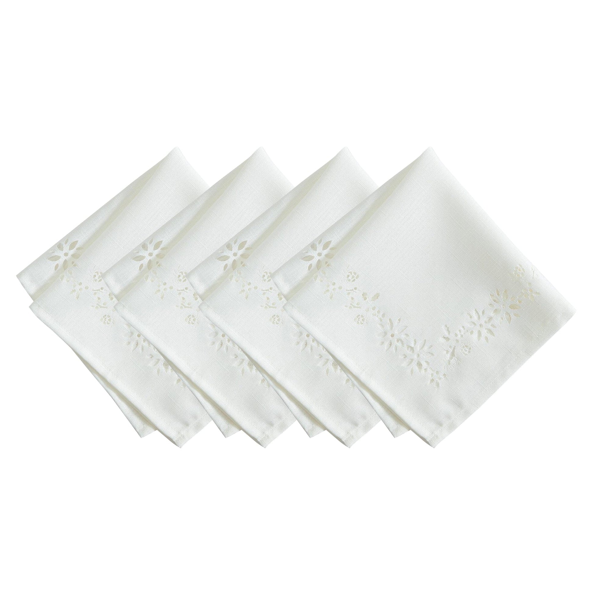 Holiday traditions meet modern elegance in our stunning Poinsettia Noel Laser-Cut Border Napkin Set. Crafted with precision using state-of-the-art laser-cutting technology, each napkin in this set of four features a delicate poinsettia flower and holly leaf border that helps to bring the essence of the holiday season to any table setting. Excellent for special occasions, events, Christmas parties, family gatherings and everyday use during the winter months. Made from 100% high-quality polyester, and available in two colorways - cranberry red and ivory - these reusable napkins are not only beautiful but also durable, featuring hemmed edges to ensure they withstand the joys of countless holiday seasons to come. Machine washable and dryer safe for easy care. Coordinate to the Poinsettia Noel Laser-Cut Border tablecloth and placemat set to complete the look.