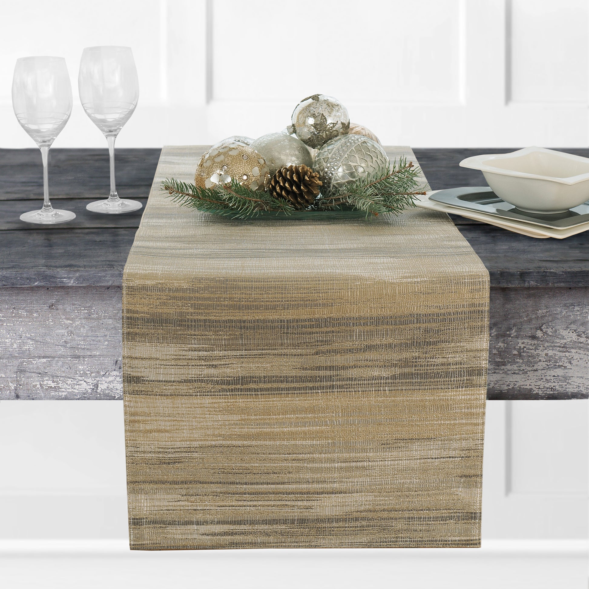 The Villeroy & Boch Radcliffe Jacquard Table Runner features a subtle lurex sparkle though an elegant woven ground of neutral colors including cream, gray, and taupe, making this table, console, or mantle runner ideal for every décor style. The classic look and versatile styling potential make this reusable runner the perfect choice for any tablescape, whether it’s a casual brunch, seasonal gatherings or a formal holiday event. Made from a high quality polyester and metallic blend, this durable table accent is machine washable for effortless upkeep. Artfully hemmed edges add a tailored, finished look to modern and traditional table settings while preventing wear and tear. The perfect compliment to your favorite Villeroy and Boch dinnerware collection, this decorative table-runner is sure to delight your guests. Coordinating placemat and napkin sets are sold separately.