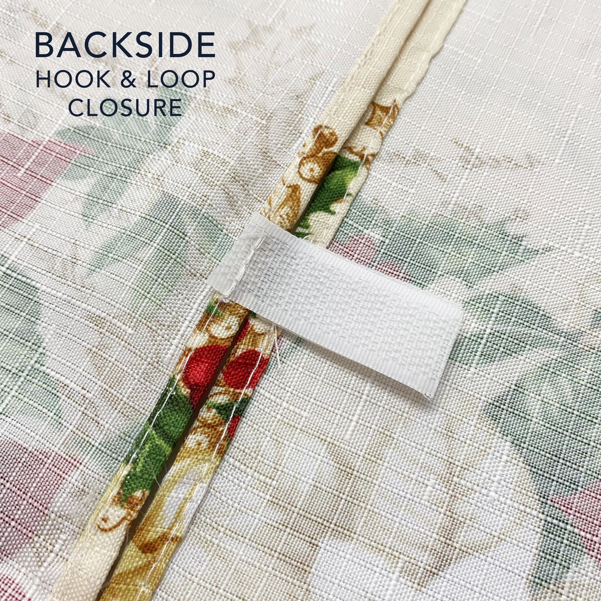 The Red and White Poinsettias Christmas Tree Skirt gives your tree the atmosphere of Christmas holiday. Double border holiday design features vibrant red and white poinsettias with golden touches and green leaves and berries. Classic poinsettia floral design is the perfect complement to your tree during the holiday season. Soft and durable fabric can be ironed to release stubborn creases and make your tree skirt wrinkle free. Hemmed edge adds a finished look and prevents wear and tear. Tree skirt measures 48” in diameter and suitable for Christmas trees of various sizes. Middle hole measures 4” in diameter and opening slit measures 21 inches long. Nylon hook and loop fastener for easy closure. 100% Polyester. Easy care, machine washable. Coordinate to Red and White Poinsettias bordered tablecloth, napkins, and placemats to complete the look.