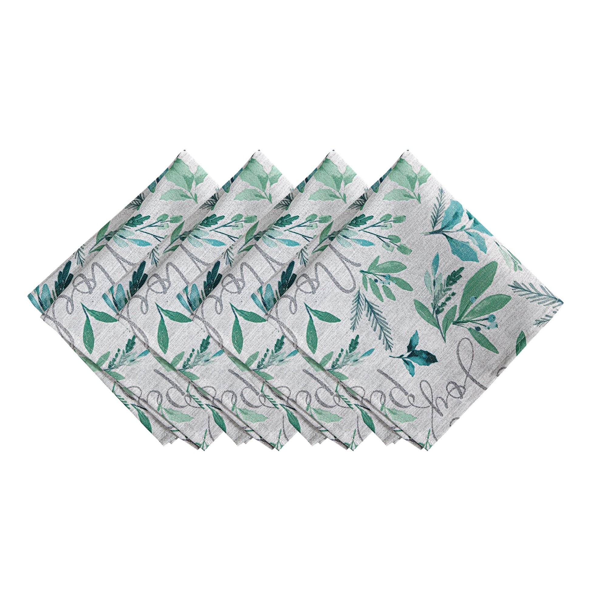 Set the tone for memorable meals and cozy celebrations with our Seasons Greetings Holiday Napkin Set. Over a shimmering off white ground, this set of reusable napkins features a beautiful printed design of winter foliage, such as pine and holly, in tranquil blue and green tones, and is scattered with warm seasonal greetings such as "Joy," "Peace," "Noel," and "Merry Christmas”, to add a serene touch of winter elegance to your home. Excellent for special occasions, events, Christmas parties, family gatherings and everyday use during the winter months and holiday season. Made from a blend of high quality polyester and lurex, these elegant napkins are not only beautiful but also durable, featuring hemmed edges to ensure that they withstand the joys of countless holiday seasons to come. Machine washable and dryer safe for easy care. Coordinate to the Seasons Greetings tablecloth and placemat set to complete the look.