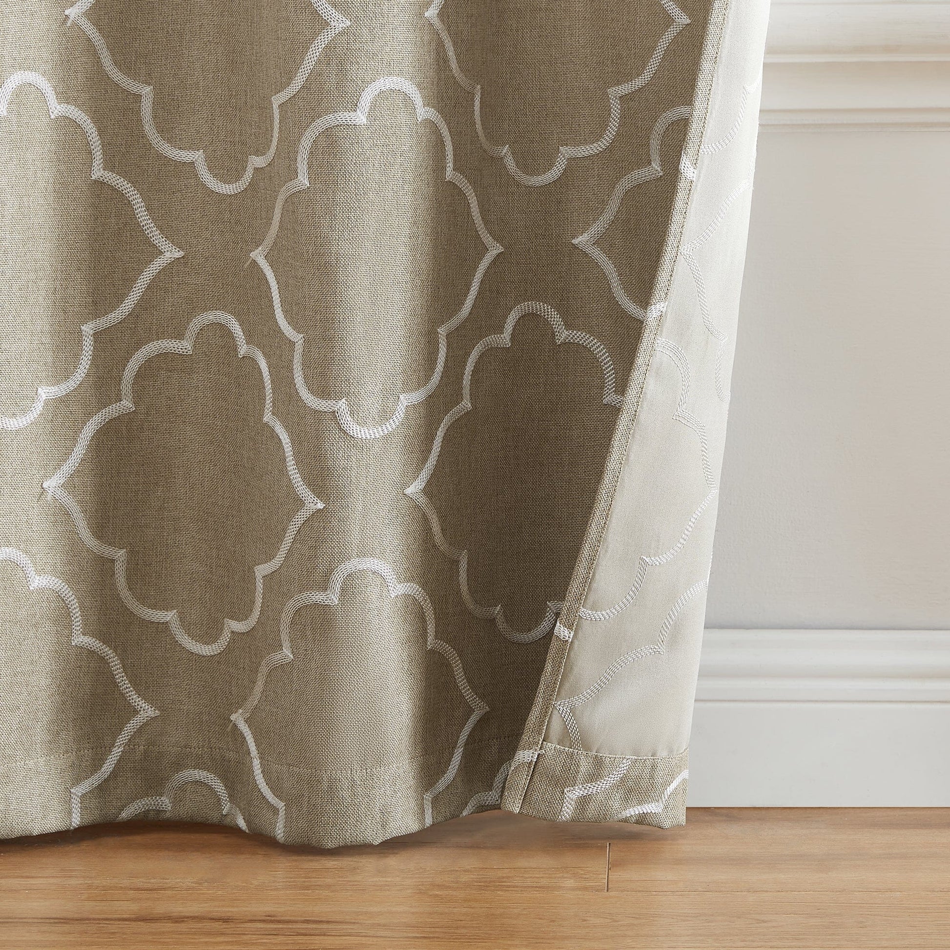 Valian Lattice Embroidered Blackout Window Curtain Panel, Set of 2