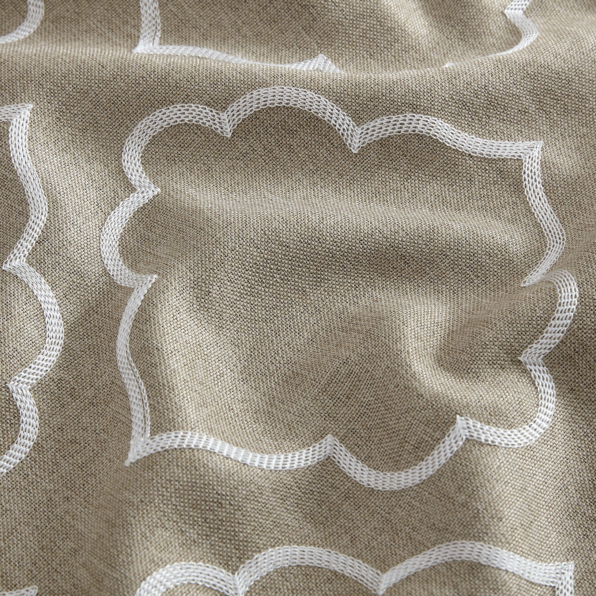 Elevate your living space with our Valian Lattice Embroidered Blackout Window Curtain Panel, Set of 2. Designed to combine beauty with functionality, these window panels showcase a gorgeous quatrefoil embroidered pattern and offer both room darkening and blackout benefits. Crafted from high-quality 100% polyester fabric, these panels are woven with durable blackout yarns to block out light, noise and to help insulate windows. Ideal for bedrooms, living rooms, nurseries, home offices and more. Equipped with 1.57-inch brushed nickel grommets, each curtain panel features 6 sturdy grommets across the header ensuring easy and smooth gliding while adding a touch of modern elegance to any room in your home. Sold as a set of two, each window panel measures 37 inches wide by either 63 or 84 inches long. 100% Polyester. Easy care, machine wash cold in gentle cycle. Tumble dry low. Cool iron as needed.