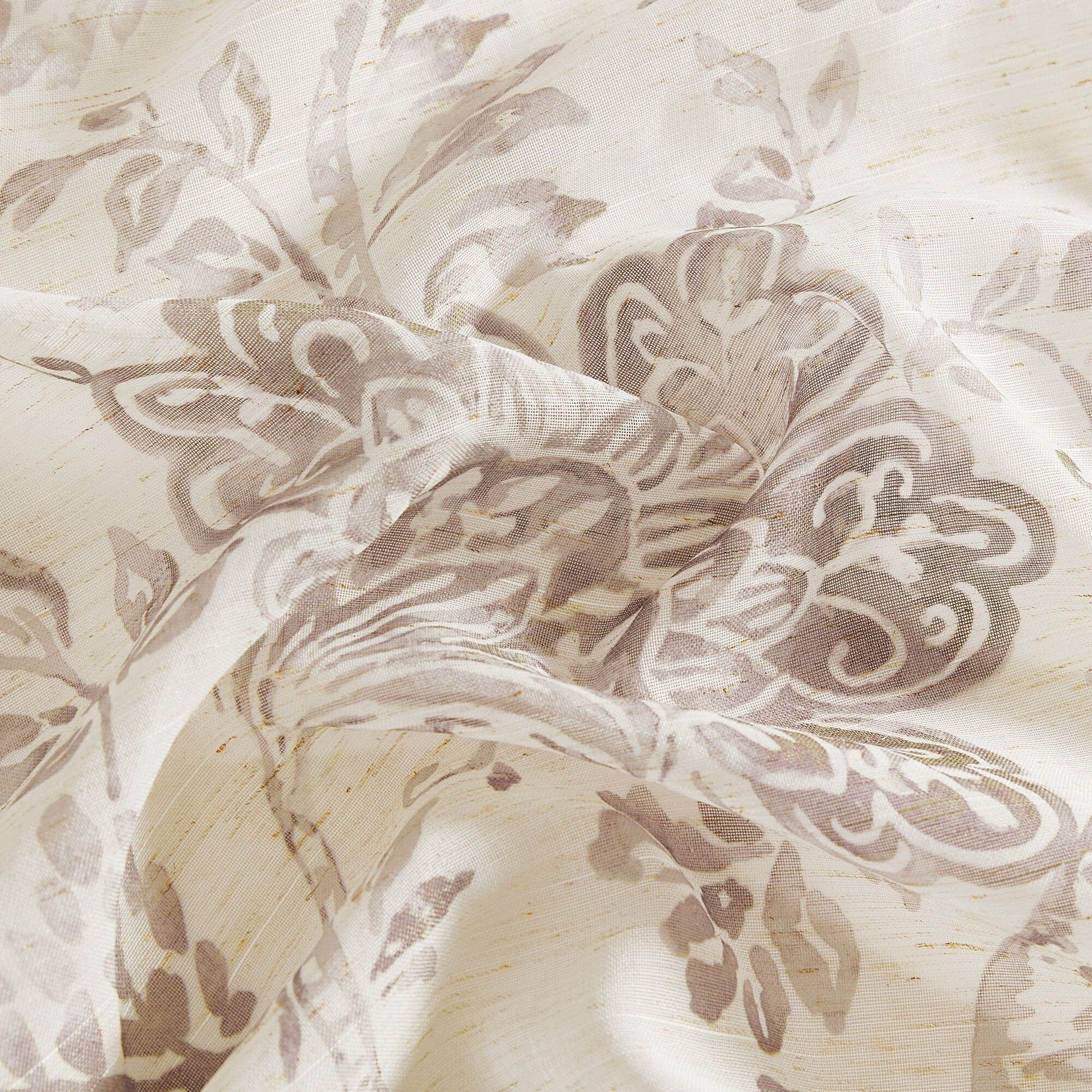 Romantic and elegant, the Westport Floral Tie-Top Sheer Window Curtain Collection is sure to bring an elevated, coastal touch to your home. Designed with a luxurious hand and a soft drape, these trendy window panels feature a distressed Jacobean floral print offered in three versatile colors as well as light filtering benefits. Crafted from a poly-linen blend, they are perfect for creating a light, airy aesthetic in any room of the home. Easy to hang and to care for, the Westport panels feature a completely adjustable bunny-ear tie top header for a custom fit to any size curtain rod and are machine washable.